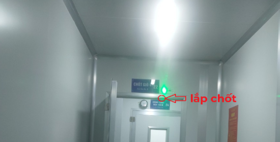 Tuy nhiên, ở một số nhà máy, việc sử dụng tường gạch và cửa nhựa cũng không phải hiếm. Để dễ dàng hơn cho việc lắp đặt, chúng ta có thể lắp chốt khóa và tấm định vị ở phía trên của cánh cửa (như ảnh 1) để tiết kiệm khoảng cách cần khoan.