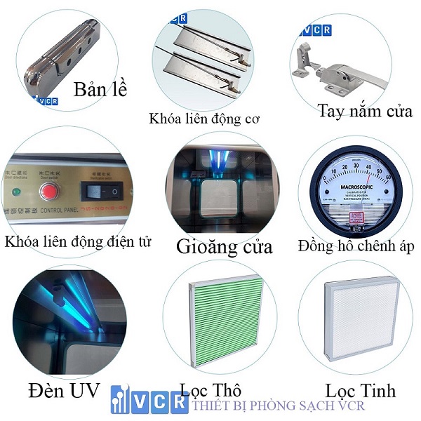 Một bộ phận cũng được coi trọng nữa là đèn UV diệt khuẩn. Trong quá trình chuyển đồ, các đồ vật hàng hóa cần được diệt khuẩn trước khi đưa vào phòng sạch.