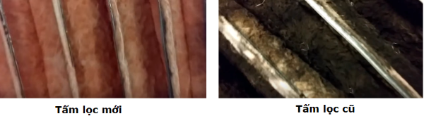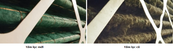Trên đây là hình ảnh so sánh so sánh bộ lọc không khí sơ cấp mới và cũ. Chúng rất hiệu quả trong việc bắt các hạt bụi có kích thước khoảng bốn hoặc năm micron. Trong thực tế, chúng có thể bắt được các hạt có kích thước từ một đến hai micron.