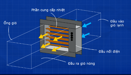 Các yếu tố cuộn nhiệt mở được sử dụng chủ yếu trong các ứng dụng ống dẫn, lò nung và đôi khi là cuộn quạt. Chúng hoạt động bằng cách sử dụng các cuộn tiếp xúc với kim loại có điện trở cao để sinh nhiệt. Các bộ trao đổi nhiệt này được đặt trực tiếp vào luồng không khí và khi không khí đi qua các cuộn, năng lượng nhiệt được truyền qua bằng đối lưu. Chúng cung cấp hệ thống sưởi đồng đều trên luồng không khí mặc dù chúng chỉ được lắp đặt ở 1 nơi an toàn cố định và không thể bị tiếp cận 1 cách dễ dàng.