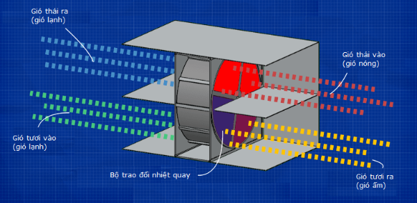 Những bộ trao đổi nhiệt loại này có thể được sử dụng trong những tháng mùa đông để lấy lại nhiệt từ dòng gió thải của tòa nhà, nhiệt này được giữ bởi bánh xe nhiệt và truyền vào luồng tươi sẽ lạnh hơn nhiều so với không khí bên trong tòa nhà.