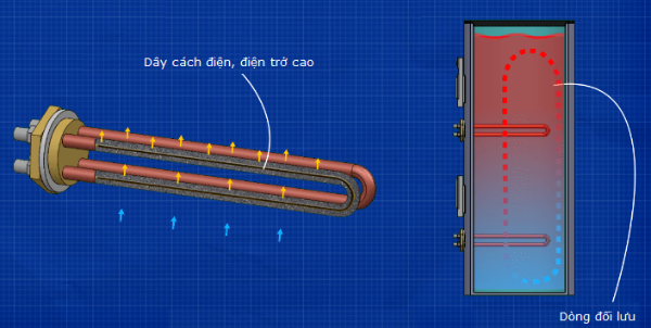 Bộ sưởi nước thường được tìm thấy trong nhiệt lượng kế và máy nước nóng, đôi khi nó cũng được sử dụng trong lưu vực các tháp giải nhiệt mở để ngăn nước đóng băng vào mùa đông. Chúng sử dụng một cuộn kim loại dọc theo ống có giá trị điện trở cao. Điện trở này tạo ra nhiệt. Cuộn dây được cách điện để chứa dòng điện nhưng cho phép dòng năng lượng nhiệt. Phần tử gia nhiệt được đặt chìm trong bể nước và nhiệt được dẫn ra khỏi phần tử và vào trong nước. Do đó, nước tiếp xúc với bộ phận làm nóng được làm nóng và điều này làm cho nó dâng lên trong bể, nước mát sau đó chảy vào để thay thế nước nóng này, nơi chu kỳ này sẽ tiếp tục.THIẾT BỊ PHÒNG SẠCH