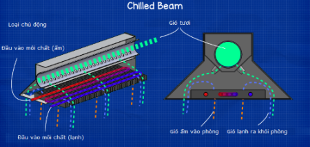 Chilled beam chủ động hoạt động bằng cách đẩy chất lỏng lạnh, thường là nước, qua bộ trao đổi nhiệt dạng ống. Sau đó dẫn không khí vào Chilled beam và nó thoát ra ngoài qua các vòi được định vị đặc biệt. Không khí này di chuyển qua ống và thổi khí lạnh vào phòng. Thiết bị loại này sử dụng cơ chế đối lưu cưỡng bức.