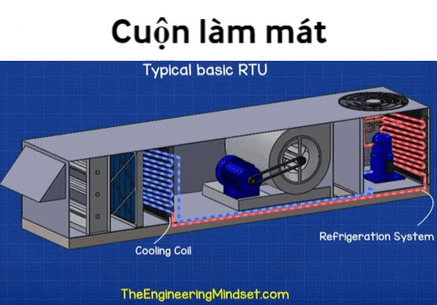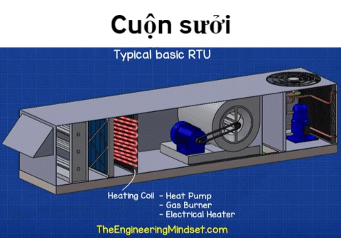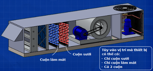 Tiếp đến, không khí sẽ chảy qua các cuộn trao đổi nhiệt để làm nóng hoặc làm mát không khí đến nhiệt độ mong muốn.