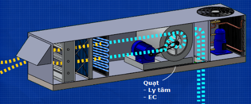 Sau đó quạt sẽ chuyển không khí vào tòa nhà thông qua hệ thống ống gió đến các địa điểm được chỉ định.