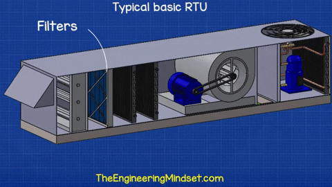 Bây giờ, chúng ta sẽ xem xét tiếp về các thiết bị xử lý không khí hay còn gọi là AHU. Các RTU cũng là một loại xử lý không khí, sự khác biệt chính là chúng thường nhỏ gọn hơn và chúng luôn được lắp đặt trên mái nhà nên chúng cần mạnh mẽ hơn và chống chịu tốt với thời tiết để đối phó với nắng, mưa, tuyết, gió, v.v. Ngoài ra, AHU thường sẽ được kết nối với thiết bị trung tâm như thiết bị làm lạnh Chiller và nồi hơi để cung cấp hệ thống sưởi và làm mát, nhưng RTU thì độc lập và đã có sẵn mọi thứ nó cần. Đó là lý do tại sao họ gọi chúng là điều hòa không khí và chúng ta sẽ sớm nhìn vào bên trong một số mô hình RTU để hiểu lý do tại sao. PHÒNG SẠCH LÀ GÌ?